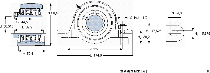 | 系列:座式滚子轴承单元 | 极限转速: |
